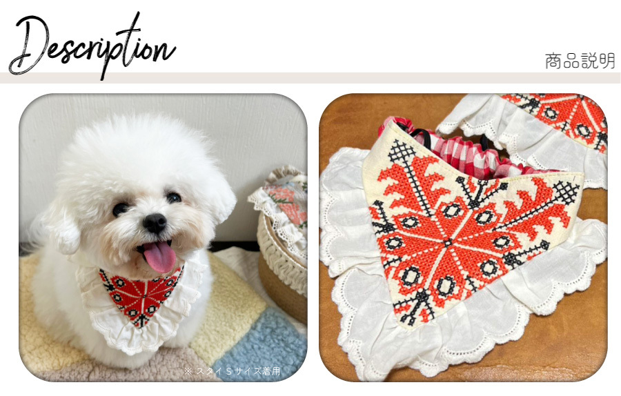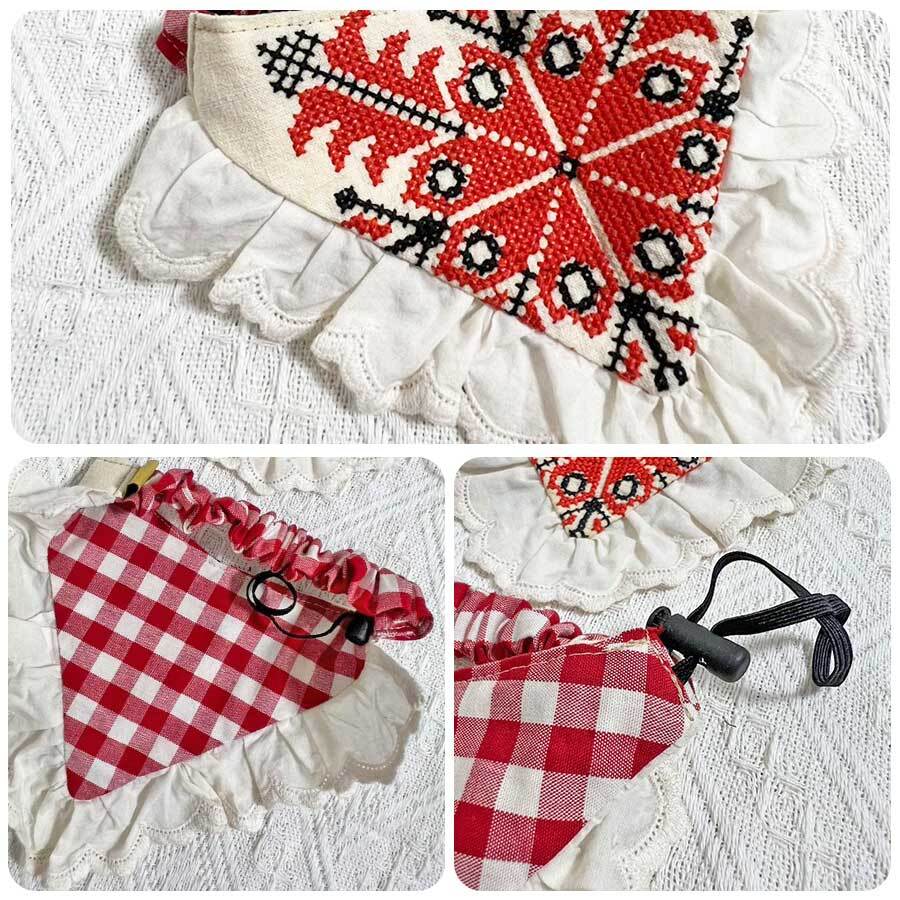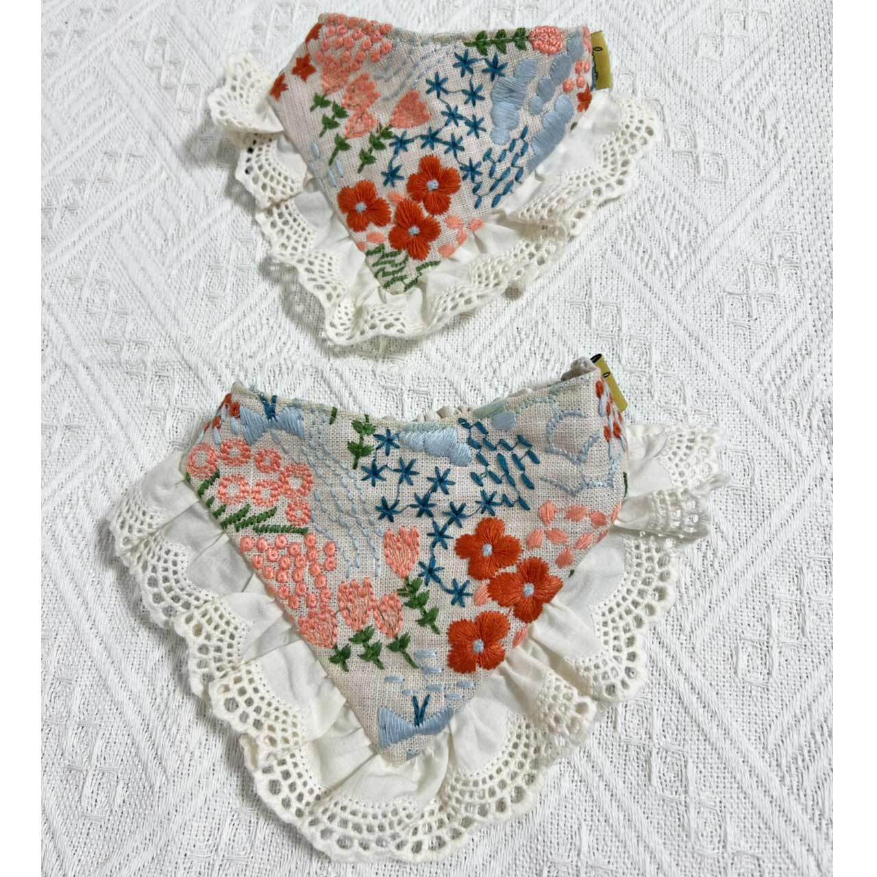 刺繍フリルスタイ【Way_Collection】( 犬用 ケープ ししゅう フリル スタイ リバーシブル アンティーク アクセサリー 手作り ハンドメイド 愛犬とおでかけ おでかけコーデ プレゼント ギフト) 【Wanfood BULAN】