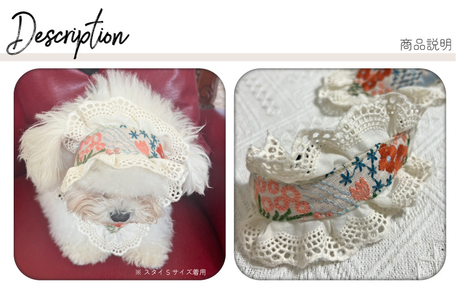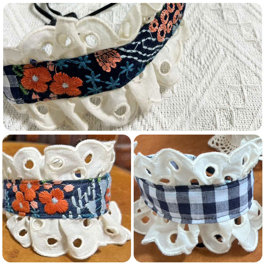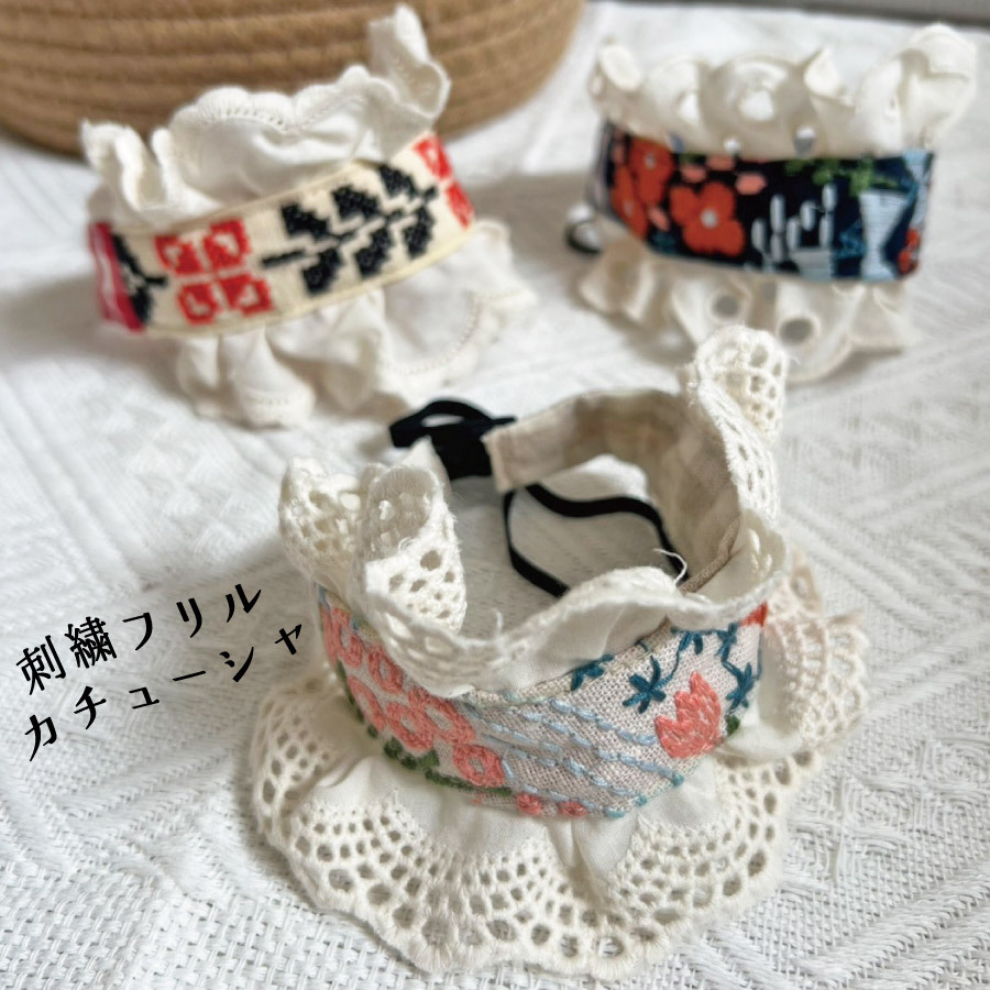 \\new//刺繍フリルカチューシャ【Way_Collection】( 犬用 カチューシャ ヘアバンド 首飾り スタイ アクセサリー 手作り ハンドメイド 愛犬とおでかけ おでかけコーデ プレゼント ギフト) 【Wanfood BULAN】