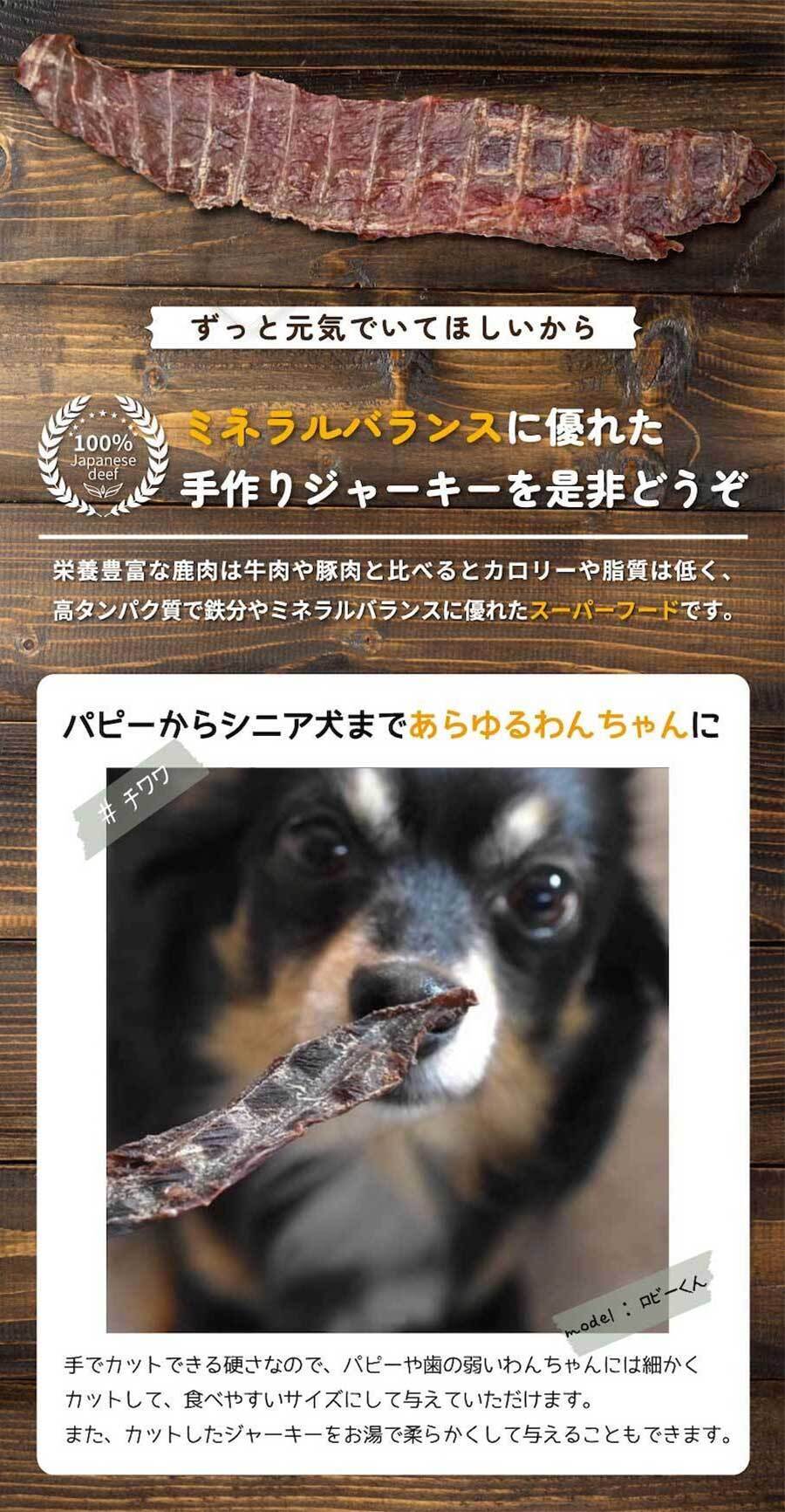 ・部位に寄っては一部筋が目立つ場所がある場合がございます。気になる箇所をキッチンバサミなどでカットして筋立をしてあげると小型犬でも安心して食べていただけます。