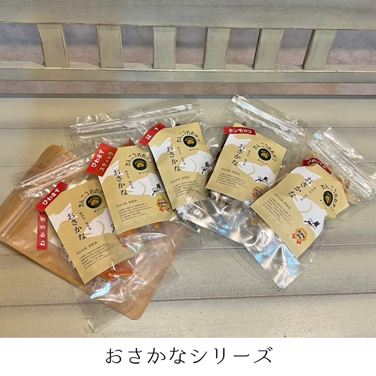 ✔ わんこうのおやつ[鹿・とり・おさかな・いのしし・アラカルト・大地のめぐみ・SWEETS]のシリーズの中より9点をセットにしてお届けいたします。