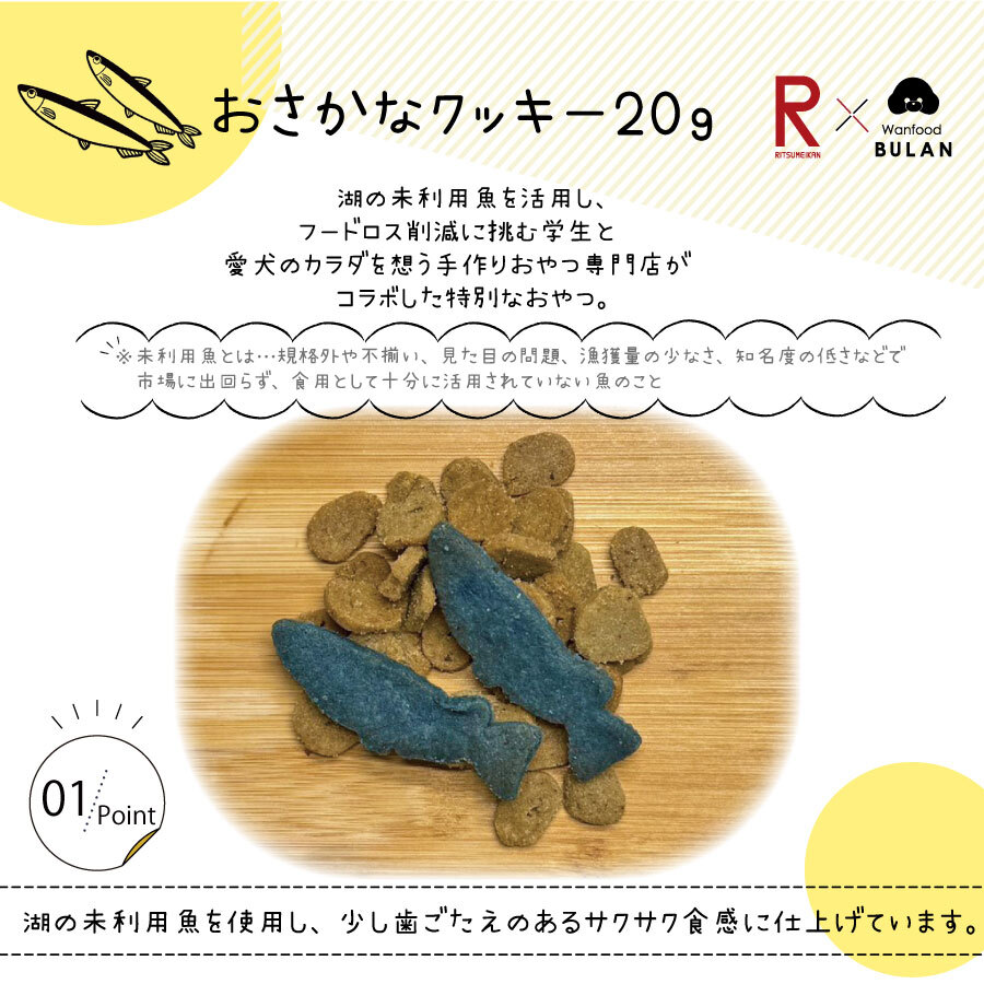 \\立命館高校とのコラボ商品//*おさかなクッキー 20g【SWEETSシリーズ】(犬のおやつ トリーツ ホンモロコ ほんもろこ フードロス削減 未利用魚 米粉 おさかなクッキー クッキー 立命館高校 滋賀県産)