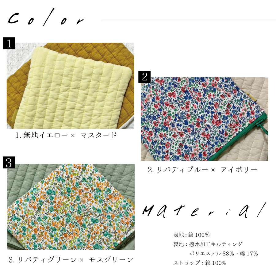 表地は無地と小さな花柄が散りばめられたリバティ柄の2種類でお色は3展開。