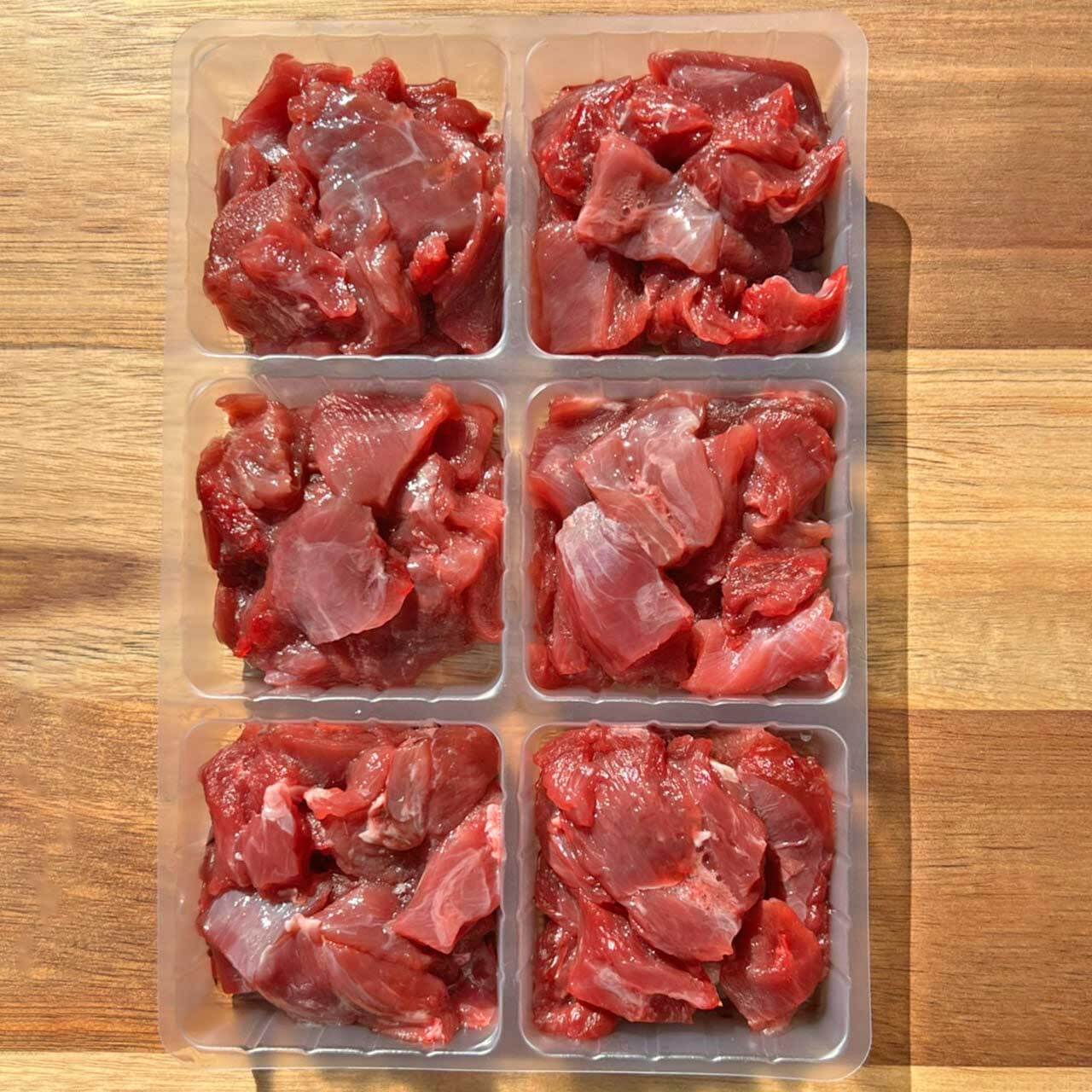 \sale/*冷凍*鹿生肉 ぶつ切り 250g 6マス【鹿肉】(滋賀県産 鹿 生肉 無添加 犬用 ジビエ 手作りごはん 小分けトレー 冷凍配送) 【Wanfood BULAN】