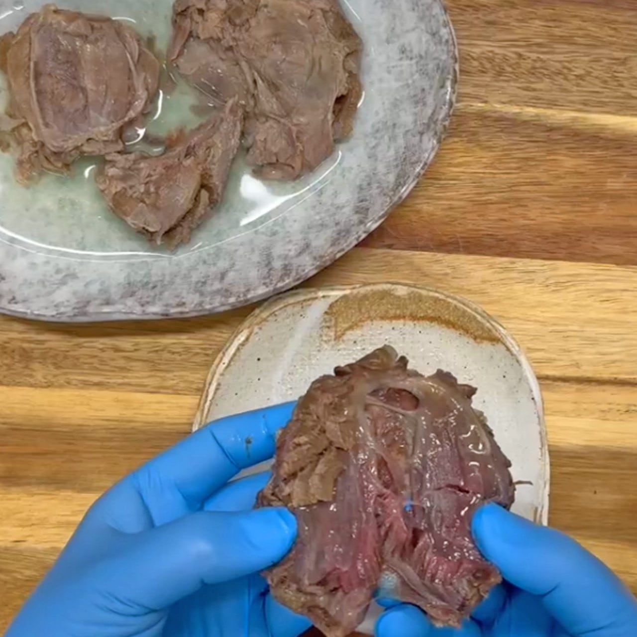 ・慣れるまでは解凍した鹿肉をパッケージから取り出し、お鍋で湯通ししてから