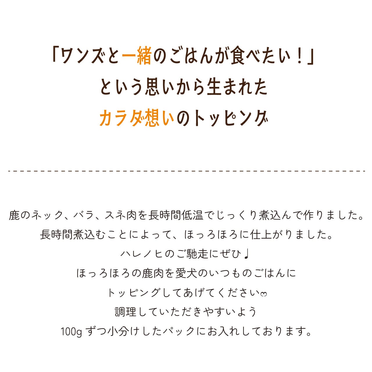\Web先行SALE/*冷凍*鹿肉のほろほろ煮 KOWAKE 300g(100g×3p)【近江のめぐみ便】(お試しサイズ 小型犬用 中型犬用 ハレの日 ごちそう 記念日 手作り 犬のごはん ベニソン かたまり 塊 生肉 鹿肉 トッピング 無添加 冷凍配送 滋賀県) 【Wanfood BULAN】