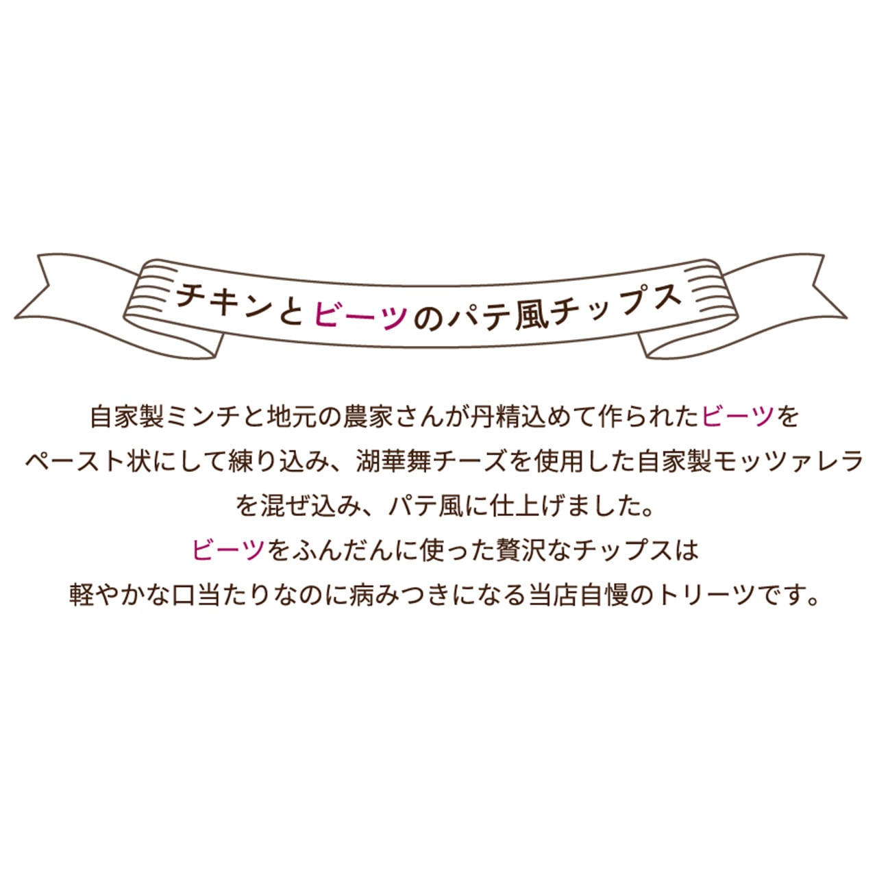 原材料名:ビーツ・国産鶏むね肉・フレッシュチーズ・パセリ